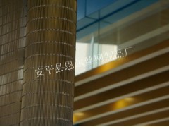金屬網(wǎng)簾用途:用于墻面的掩蓋裝飾,室內(nèi)的隔斷裝飾,柱子的覆面裝飾,天花的立體裝飾,建筑物的立面、隔斷、吊頂、遮陽(yáng)、陽(yáng)臺(tái)、走廊、卷簾、樓梯通道以及機(jī)場(chǎng)車站、賓館酒店、高級(jí)別墅、寫(xiě)字樓、展廳等高檔內(nèi)外裝修等,尤其是天花的立體裝飾更能體現(xiàn)出高雅,通透,樸素大方的視覺(jué)效果。