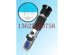 用于測(cè)定乙二醇(丙二醇)型防凍液冰點(diǎn)、蓄電池電解液比重及玻璃清洗液冰點(diǎn),又稱防凍液冰點(diǎn)儀;電池液比重計(jì);玻璃清潔液冰點(diǎn)儀。只要滴幾滴液體在棱鏡上,然后向著光觀察,就可以快速讀出溶液的濃度。通過(guò)測(cè)得的百分比可以知道以丙二醇和乙二醇為基的防凍系統(tǒng)的冰點(diǎn)和汽車前窗玻璃清潔液的冰點(diǎn),還可用來(lái)檢查蓄電池內(nèi)電解的比重及使用狀態(tài)。測(cè)量范圍:防凍液冰點(diǎn):0到-50℃;電池液比重:1.10到1.40;玻璃液冰點(diǎn):0至-40℃。操作說(shuō)明:掀起蓋板用柔軟絨布交蓋板及棱鏡表面擦拭干凈;將待測(cè)液體用吸管滴于棱鏡表面,合上蓋板輕輕按壓,將折射計(jì)對(duì)向明亮處,旋轉(zhuǎn)目鏡使視場(chǎng)內(nèi)刻度線清晰,讀出明暗分界線在標(biāo)示板上相應(yīng)標(biāo)尺上的數(shù)值即可;測(cè)試完畢,用絨布擦凈棱鏡表面和蓋板清洗吸管,將儀器放還于包裝盒內(nèi);在測(cè)量電池液時(shí),注意不要灑在皮膚和眼睛上,以防燒傷,測(cè)試后仔細(xì)擦凈儀器