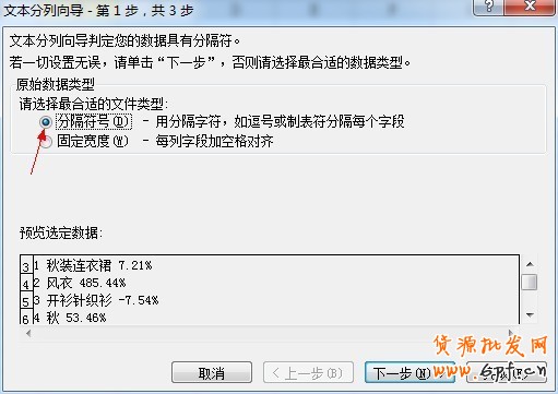 然后,就會看到結(jié)果,但是結(jié)果不是我們想要的格式。我們就在數(shù)據(jù)——分列把數(shù)據(jù)變換一下。