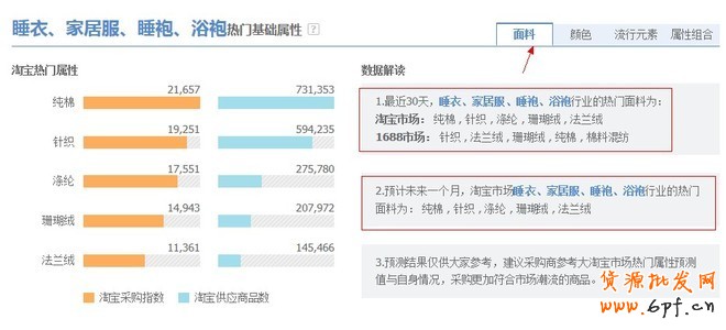 1.最近30天,所有面料的睡衣丶家居服丶睡袍丶浴袍,淘寶市場成交最多的商品價格帶為>=78.1元,您的同行在1688市場采購最多的商品價格帶為31.2~46.9元。