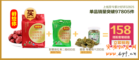 淘寶搜索好想你,首頁第一行就有兩款這家店鋪的好想你棗,月銷量均在1500單以上。