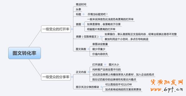 寫(xiě)到這里,已經(jīng)破拆完了影響一級(jí)打開(kāi)率和一級(jí)分享率的主要因素。作為運(yùn)營(yíng)者,能做的就是讓一級(jí)受眾盡可能地打開(kāi)、分享。至于,這條微信能不能走得更遠(yuǎn),完全取決于你的內(nèi)容了。筆者做了一張簡(jiǎn)易的思維導(dǎo)圖供大家更直觀明了地了解這些細(xì)節(jié):