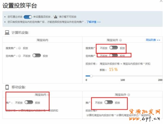 設置第三步:投放平臺設置,除了電腦端站內投放,其他投放平臺和形式,全部關掉。