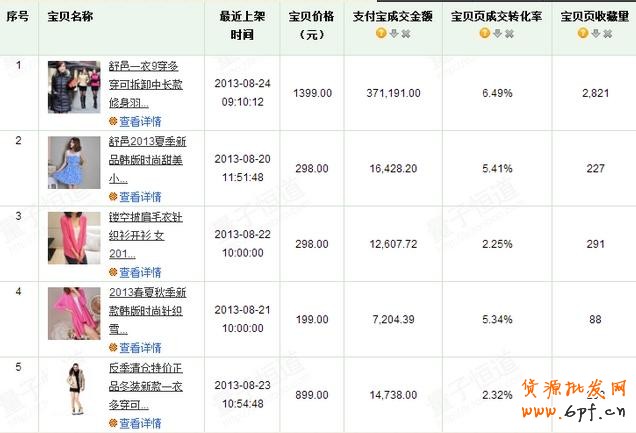 前期測試主圖,同時結(jié)合收藏數(shù)據(jù),基本上就能判斷出哪些款后期可能表現(xiàn)較。如下圖所示,綜合數(shù)據(jù)發(fā)現(xiàn)1號寶貝轉(zhuǎn)化率高達(dá)6%,收藏率高達(dá)2800!通過其他數(shù)據(jù)綜合對比,最終確定1號為聚劃算款式。