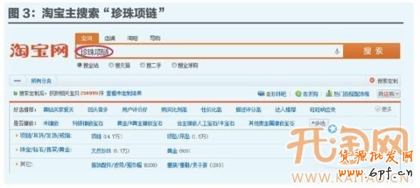 選完一個詞后,放在淘寶主搜索欄內查看,要查看的內容包括寶貝排序等。如“珍珠項鏈”一詞,按“人氣”排序,結果如圖4所示。
