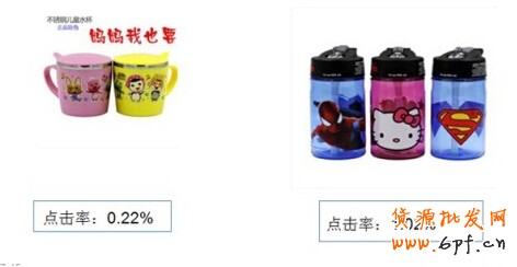 以上這兩款寶貝,第一款寶露露的水杯,一開始推廣時點擊率只有0.19%,推廣了一個月左右,點擊率到了0.22%。而第二款寶貝,才推廣上去點擊率就達到了0.7%,之后點擊率更做到了1.02%。所以,綜合比較下來,第二款寶貝的點擊率比第一款要高很多,更適合直通車的推廣。