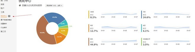 1質(zhì)量分占比,能綜合判斷出整體計(jì)劃的質(zhì)量分值的比例,比如說我們的九分十分比較多,比例比較大,那我們計(jì)劃的整體推廣效果就比較好,可能之后加分的基礎(chǔ)分就比較高。而且還可以看出近7天的質(zhì)量分的漲幅趨勢