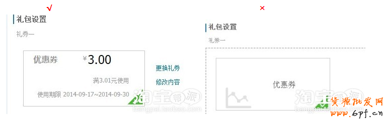 A: 那說明禮券沒有設(shè)置成功,禮券設(shè)置成功之后應(yīng)該顯示如左圖,如果出現(xiàn)右圖,則說明設(shè)置失敗,建議換谷歌瀏覽器設(shè)置。