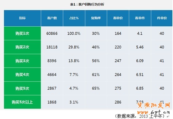 新客戶培養(yǎng),提高回頭率和二次購買率,可以拉升店鋪整體銷售額。 二八定律告訴我們更多的銷售額來源于并不算多的少部分客戶,我們店鋪大多數(shù)成交用戶都來自于新客戶群,而自然轉(zhuǎn)化為二次購買的客戶占比并不高,需要通過提高客戶第一次購買體驗(yàn)來提高回頭率,而這個過程就需要對已購買的客戶進(jìn)行一個定位和細(xì)分。獲取這些信息,從訂單數(shù)據(jù)里面將這些客戶的資料都能挖掘出來,這些資料包含客戶的ID、姓名、Email、手機(jī)號、購買頻次(時間和次數(shù))等。以食品類目某店鋪的CRM分析為例。