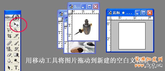 第四步:把改好大小的圖片,移到第一步新建的文件里,做店標(biāo)用。方法:用移動(dòng)工具,按住圖片直接拖到新建文件里。如圖: