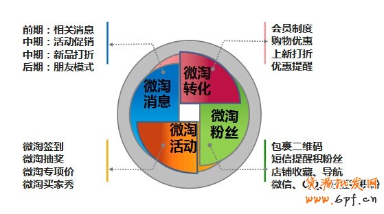 微淘消息:通過微淘廣播內容進行互動,可包括產品直接推送、感情產品推送、廣告促銷、活動推薦、使用分享、講故事、曬照片、知識分享等形式,吸引新客戶,維護老客戶。