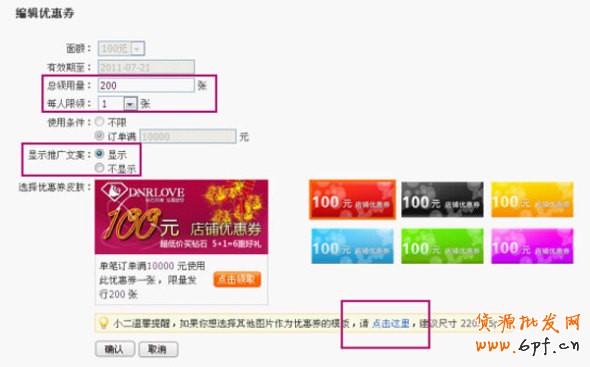 注:優(yōu)惠券模板是可以根據(jù)自身店鋪情況進(jìn)行修改的。具體樣式可根據(jù)各賣家店鋪風(fēng)格而定。
