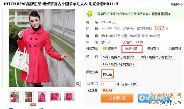 2、支持貨到付款的商品,寶貝頁面會有顯著的提醒。