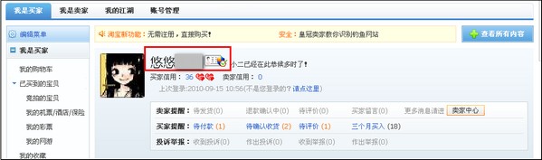 3、在頁面左上方可以看到此支付寶賬戶對應(yīng)的淘寶會員名,也可以點擊【我的淘寶】查看此淘寶會員名的詳細(xì)信息;