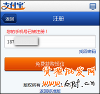 4)如果手機號已經為登錄號,提示輸入的號碼已經被注冊。