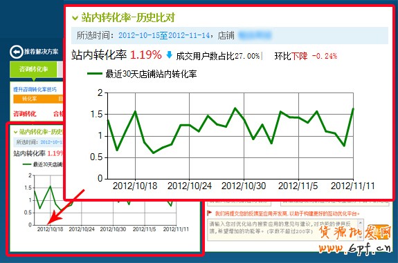 1、查看“咨詢轉(zhuǎn)化率”在店鋪中的表現(xiàn)以及現(xiàn)有轉(zhuǎn)化率數(shù)值;