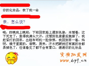 親,您是想間接的批判產(chǎn)品不好呢?還是純粹的真的是有其事,這樣玩心跳,讓人樂開懷的同時,也無限煩惱啊,究竟這個是投訴,還是真的是產(chǎn)品擁有神功效呢?這讓人猜不透客戶的心里,也找不到好的解決辦法呀。