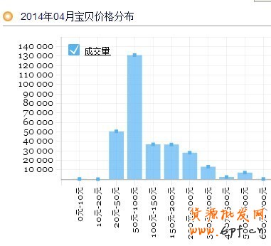 上圖是2014年04月份的寶貝銷(xiāo)量?jī)r(jià)格柱形圖