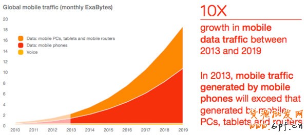 近日根據(jù)Ericsson Mobility 的報(bào)告稱,在2013年到2019年間,移動(dòng)端的流量將會(huì)每年增長(zhǎng)45%,也就是說到了2019年移動(dòng)端的流量會(huì)是如今的10倍。