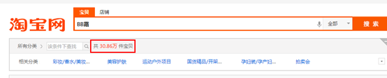 注意搜索結果頁(下圖)把寶貝數填入“展現寶貝數”這一欄: