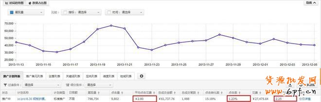其實看數據,PPC是一直在降低的,而且投入產出比一直在上升,點擊率本來是一直在上升,由于雙11的影響,節后點擊率出現了一些不穩定,但是還是比較高。