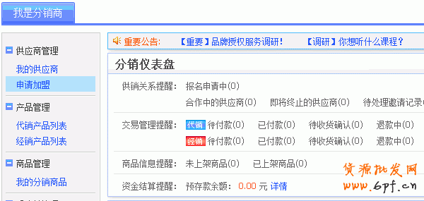 然后,供應商那邊就會看到你的申請信息,一般3-5個工作日之內供應商就會審核完畢,如果審核失敗,那么再選擇其他的供應商吧,如果審核通過,你就可以代理他們的品牌產品。審核通過后,你就可以進去自己的分銷商后臺,查看相關的供應商品信息了,并對后臺進行管理。