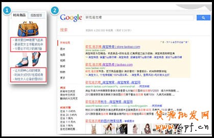 在雅虎等外網(wǎng)上直接展現(xiàn)幾個外投的寶貝,當(dāng)用戶點(diǎn)擊這個寶貝時,進(jìn)入到與該寶貝相關(guān)的一個寶貝集合頁,再次點(diǎn)擊寶貝就到了某個寶貝詳情頁。勾選了站外的定向推廣的寶貝,有機(jī)會以這種形式出現(xiàn)。