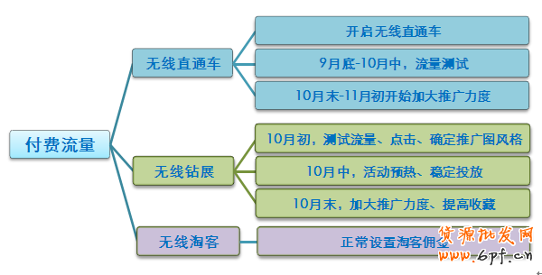 從上圖可以看到,整個策略和節奏分為: 賣家發動店鋪基礎期→賣家發動流量撬動期→銜接雙12期,三個時期來規劃無線雙十一。其中,在賣家發動環節里面涉及到了微淘、無限量子、活動、方案等都是我們前提需要去策劃、準備好的。而在預備期之后,所做的運營和推廣,都要思考如何做好對雙十二的銜接。這樣才可以把握好整個雙十一至雙十二的節奏。