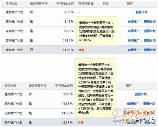 淘寶聯(lián)盟方面指出,已開通CPA的內測賣家的定向計劃后有“特殊獎勵”一欄,其中標注有“詳情”的計劃即為特殊獎勵計劃。