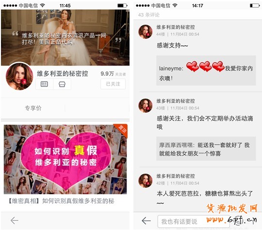 微淘平臺(tái)的互動(dòng)性很好的彌補(bǔ)了這一不足。代購(gòu)賣家“維多利亞的秘密控”通過(guò)微淘這個(gè)兼具社區(qū)性質(zhì)的平臺(tái),則緩解了自己遭遇的信任危機(jī)。通過(guò)微淘發(fā)布了商品或活動(dòng)后,再多留言消息,該賬號(hào)也會(huì)盡量回帖答復(fù),保持一個(gè)非常好的互動(dòng)水平。讓一群喜愛(ài)海外代購(gòu)產(chǎn)品的買家聚在一起,分享關(guān)注海外代購(gòu)的所有資訊,潛移默化地增加了粉絲們的忠誠(chéng)度和信任感,也免除眾多買家面臨PC端搜索迷茫的煩惱,轉(zhuǎn)化率提高了不少。