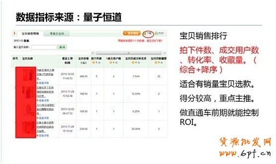 第二個是量子恒道。在量子恒道中,有一項“寶貝被訪排行”的功能,我們可以在這里獲取需要的數(shù)據(jù)。對于剛上架不久且零銷量的寶貝,建議選取的數(shù)據(jù)維度:PV、UV、平均停留時間,這些數(shù)據(jù)維度都是“往上走”的,帶有降序性質(zhì);最后還要單獨分析寶貝的跳失率。如果某款寶貝的總分值較低,而跳失率得分較高,說明這款寶貝的內(nèi)頁需要進行重點優(yōu)化。