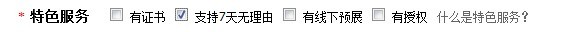 注意:賣家后臺展示:具體在發(fā)布拍品時默認為選擇7天退貨服務(wù):