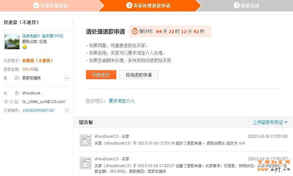 C、賣家收到買家申請后,可同意or拒絕申請。