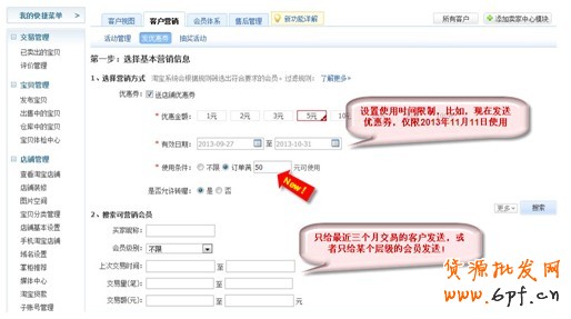 據記者了解,為了迎接即將到來的下半年銷售旺季,會員關系管理和營銷工具店鋪優惠券將實行打通,并提供賣家使用限額優惠券的功能,只要賣家同時開通了“會員關系管理”和“店鋪優惠券”的功能,則可以向會員發送有使用限制的店鋪優惠券。