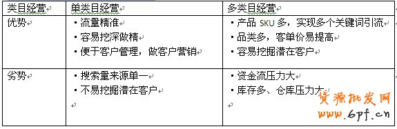 多類目經營,明顯的劣勢在于:每擴增一個品類,就不得不增加很多庫存,因為擴增的品類里面產品種數偏少,會留給買家店鋪產品不豐富,很冷清的感覺;而且采購的產品數量不多將造成采購價偏高,產品的利潤空間受限。還需要關注的是擴增的品類越多,對于現金流的壓力也就越大,對店鋪的運營能力,倉庫的管理能力都會面臨嚴峻地考驗,造成這一系列的連鎖反應,稍有不慎便會傷筋動骨。