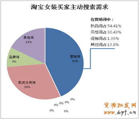 從整體淘寶女裝買家消費能力上看,100~200元的價格段為買家最容易促進成交的價格段,其次是50~100元。這個價格是一個粗的價格區間,從這個區間上大家可以知道,50~200元覆蓋的買家最多,被接受的程度也是最大的。不過,這只是一個區間段,并不是定價,可以作為定價的一個參考因素。當然,商品的定價具體是要和每個店鋪的定位、所售賣的類目以及銷售季節相結合起來的。另外,從淘寶女裝買家主動搜索的需求中體現,被關注最高是營銷詞(廣義上的營銷詞,就是廣告詞。引用到女裝上,第一種是買家自我需求的形容詞,還有一種是運營的推薦詞,這種一般是目前在流行上有一定共性的詞匯,如嗆口小辣椒、坑爹之類)、款式分類詞、品牌詞。女裝營銷詞中又以新品需求最為迫切,風格需求其次。