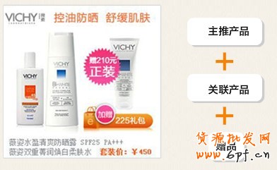 所以建議寶貝內頁的關聯銷售最好是同系列間的關聯,而組合寶貝的關聯銷售則是與其適合人群相同的其他類單個產品或組合的關聯銷售。如美白補水面部套裝對應的關聯銷售為美白浴鹽、美白面膜,而不能選擇清爽控油面部套裝或緊致套裝,因為買家已經根據專題頁面的推薦選擇美白這一關鍵詞,說明其需求是美白,所以在這里推薦其他的都是不合適的。