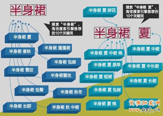 再利用這,0個關鍵詞繼續搜,如搜索“半身裙夏”,淘寶搜索引擎又會給你推薦10個關鍵詞,我們繼續按照這樣的方法進行挖掘,一般推薦挖3一4層,把所有的關鍵詞都保存起來。
