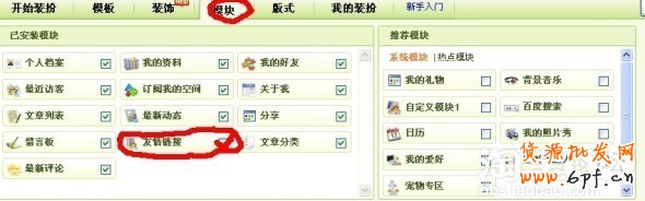 第三步:在推薦模塊那里找到友情鏈接,在后面打個勾。直接點保存,這時友情鏈接這個小模塊就會出現在你的主頁上的左上角,你可以把它放到你主頁上的任何地方。