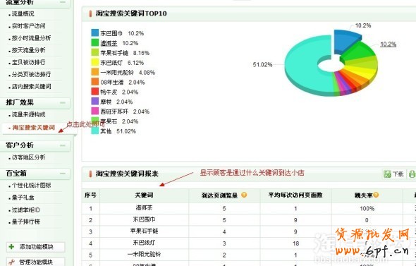 二就是通過量子統計進行逐一修改了!打開量子統計,點擊淘寶搜索關鍵詞即可了解顧客是通過什么關鍵詞進入你的店面的。(量子統計是個很不錯的工具 具體使用方法和技巧此處就不做說明了 具體的可以到量子幫派去看看,對了現在使用還可以免費一個月 新手們都可以試試哈)我這個月還是試用期,下個月就要收費了,不過這點錢我認為還是值得付出的。量子統計確實是個好工具。