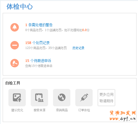 2、“賣家中心”有個“寶貝體檢中心”,可以查寶貝是否被降權違規等,你造(知道)嗎?如果有的話盡量去操作申訴或者刪除重新發布一下,如圖:
