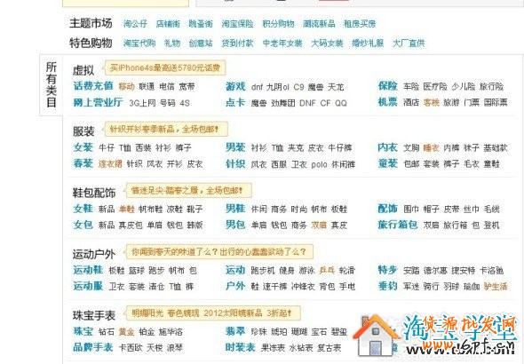 方法2:淘寶首頁——往下拉,有個所有類目——這里包括了淘寶所有的產品分類,這里大概有十五個分類,你可以從中了解到你想了解的產品,也可以看到你可能還沒有想到的行業。