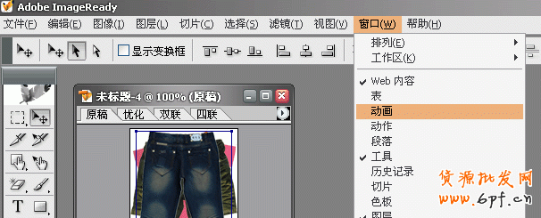 5、將【動(dòng)畫】窗口顯示出來,如果你的ImageReady中已經(jīng)有【動(dòng)畫】窗口本步驟可以跳過,如下圖: