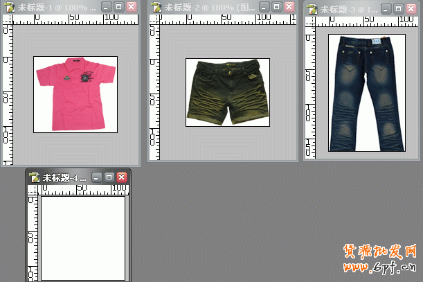 那么我們將用同樣的方法,把其余的2張圖片素材也復(fù)制到空白圖片上去,然后關(guān)閉那三張圖片素材的窗口。現(xiàn)在不需要關(guān)他是如何如下圖: