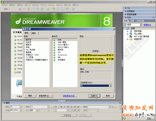 后期使用Dreamweaver把設計好的旺鋪制作為HTML,我們新建一個空白的HTML文件。
