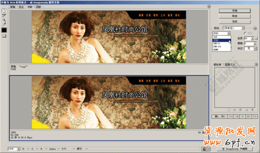 PS中有個存儲WEB格式,是專門用來存儲網絡圖片的,非常使用,請參考下面幾步掌握,如何輸出GIF和JPG兩種網絡格式,使用非常形象只管,對應調整參數您就可以看到設置后代文件效果和文檔大小,希望大家一定掌握熟練,多使用就明白了。