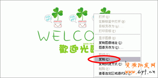 4、當(dāng)然,還可以插入圖片,方法很簡單,隨便打開一個(gè)網(wǎng)頁,在你想調(diào)用的圖片上點(diǎn)擊鼠標(biāo)右鍵,選擇復(fù)制