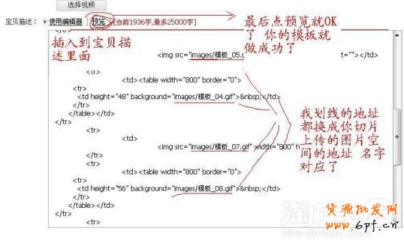 輸入所有的有效鏈接地址,就可以在剛才我們換成表格的地方插入圖片和文字了,點(diǎn)擊預(yù)覽就能看到一個(gè)精美的寶貝描述模版了,趕快動(dòng)手試一試吧!