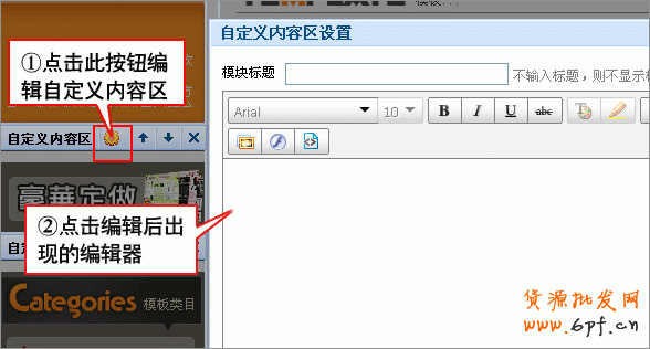 3、復制好后,到“管理我的店鋪”-----“店鋪裝修”------“添加自定義內容區”-----“編輯模塊”把旺旺圖標粘貼到里面。
