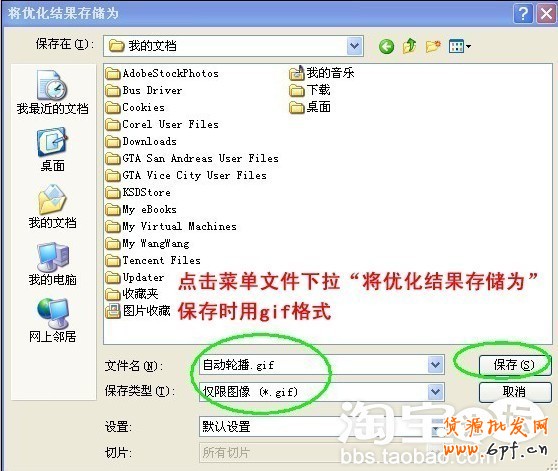 8.保存,在文件下拉菜單“將優化結果存儲為”彈出對話框,保存類型用gif格式